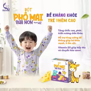 Bột phomai sữa non tách muối chứa hàm lượng 2000mg: Cung cấp canxi gấp 7 lần sữa bò, hỗ trợ phát triển chiều cao và hệ xương răng khỏe mạnh. Đặc biệt đã được tách muối phù hợp với hệ tiêu hóa non nớt của trẻ